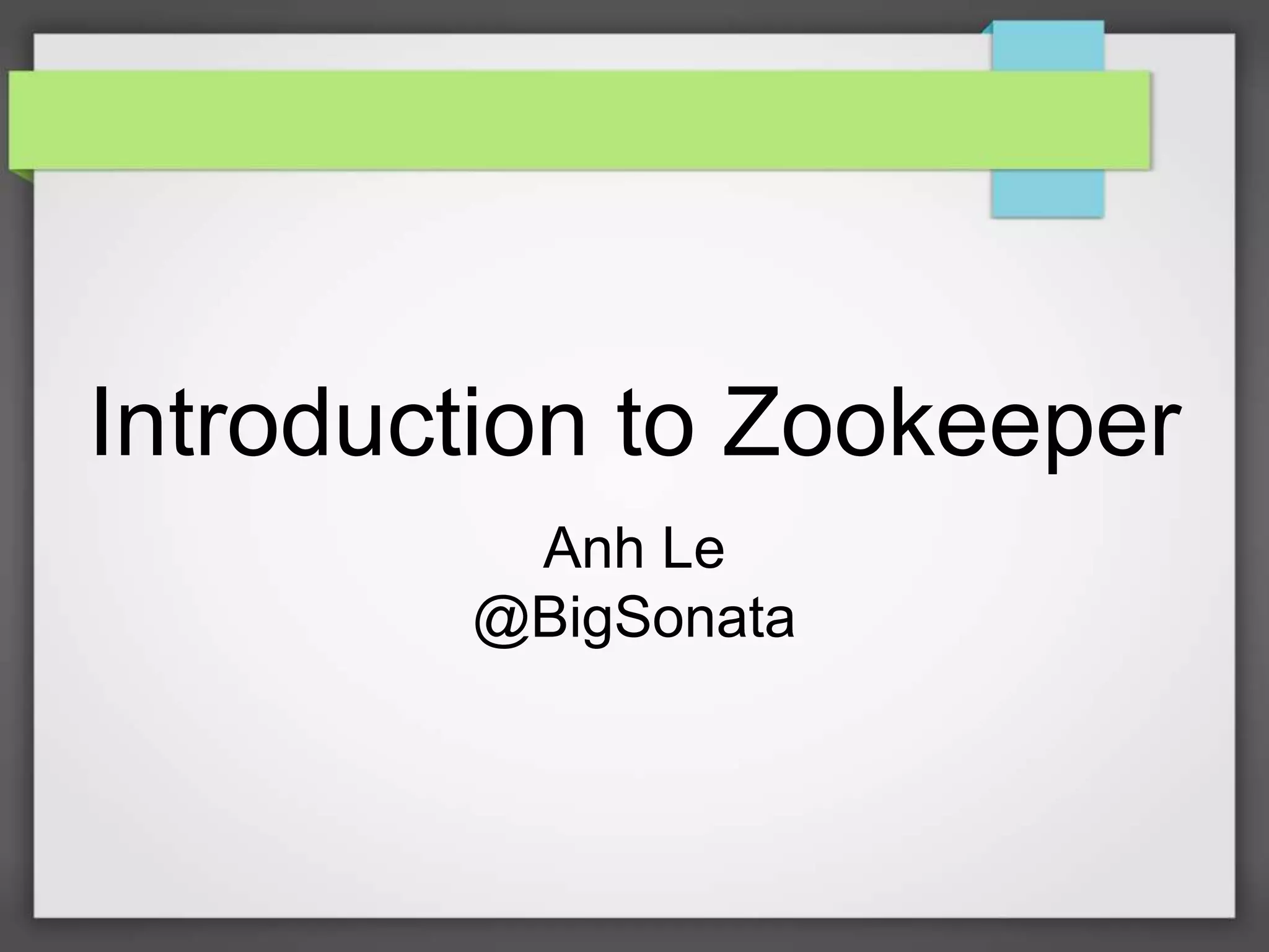 ZooKeeper is an open-source coordination service for distributed applications that provides common services like leader election, configuration management, and locks in a simple interface to help distributed processes coordinate actions and share information. It provides guarantees around consistency, reliability, and timeliness to applications using its hierarchical data model and APIs. Popular distributed systems like Hadoop and Kafka use ZooKeeper for tasks such as cluster management, metadata storage, and detecting node failures.