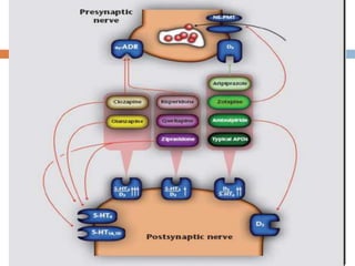 This document summarizes a presentation about the use of zotepine in psychiatric disorders. It discusses zotepine's classification as an atypical antipsychotic, its pharmacology and mechanisms of action, efficacy in treating schizophrenia and its symptoms, dosing, adverse effects, drug interactions, and use in special populations. Several studies are summarized that demonstrate zotepine's efficacy in acute exacerbation of schizophrenia, against hostility and negative symptoms, and for relapse prevention, with adverse effect profiles comparable or favorable to other antipsychotics.