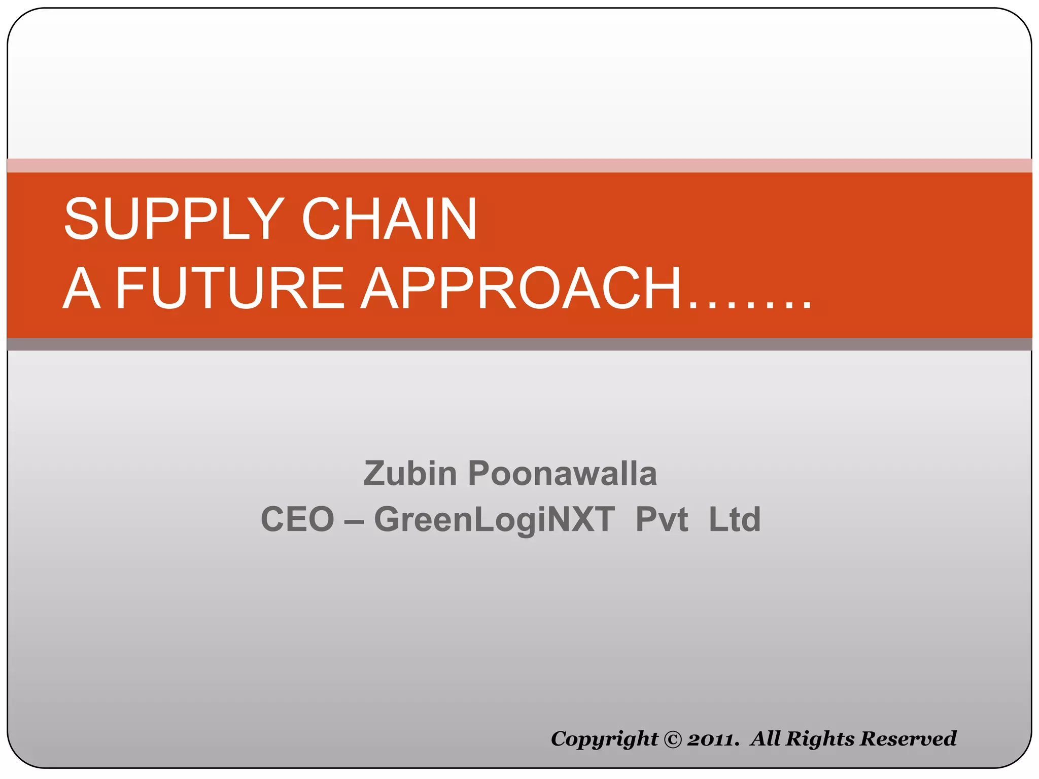 This document discusses supply chain management and the future of logistics. It covers key factors for supply chain success like route optimization, inventory management, and technology. It discusses concepts like demand driven value networks, integrative improvement systems, and supply chain maturity. It addresses topics such as inventory optimization, different planning needs, talent management, asset management, transportation methods, warehousing, packaging, and the roles of technology. It outlines principles of asset management and discusses the future of supply chains, challenges, and measures for success.