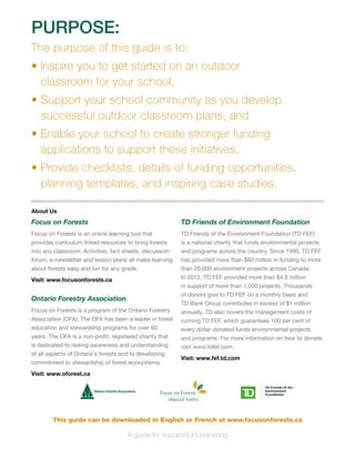 This guide aims to inspire and support schools in developing outdoor classrooms while enhancing their funding applications. It includes checklists, funding options, planning templates, and case studies, emphasizing the benefits of outdoor learning and community involvement. Successful implementation relies on preparation, maintenance, and active engagement from the school community and local partners.