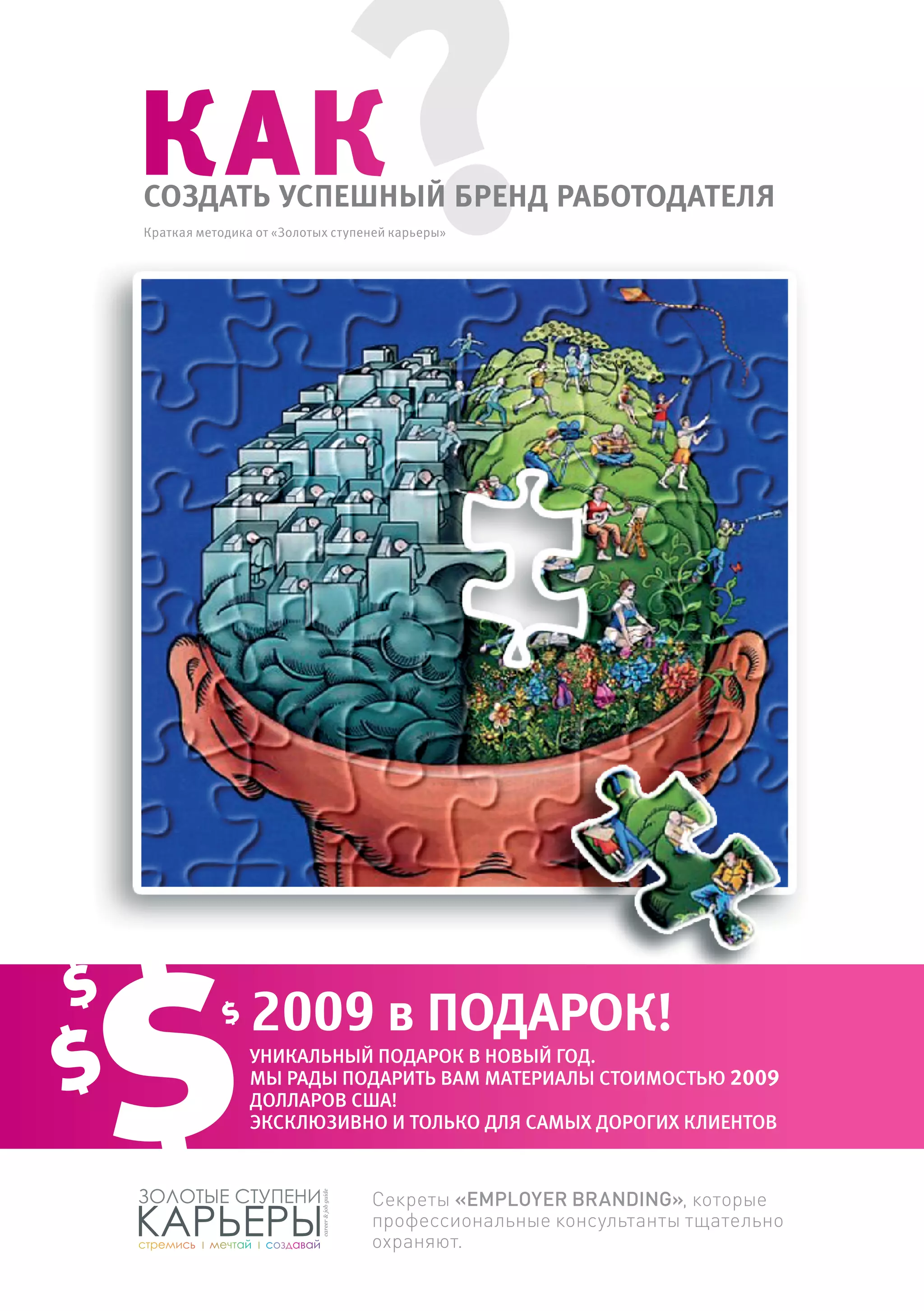 Документ описывает методику создания успешного бренда работодателя, предоставляя подробное руководство и преимущества, связанные с этим процессом. Основное внимание уделяется улучшению привлечения и удержания талантов через создание 'рекрутинговой культуры', где каждый сотрудник становится частью процесса подбора. Также обсуждаются возможные негативные последствия и финансовые затраты, связанные с внедрением бренда работодателя.