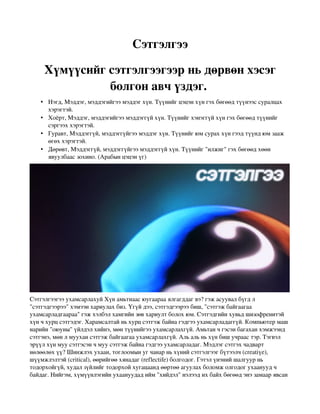Хүмүүсийг сэтгэлгээгээр нь дөрвөн хэсэг болгон авч үздэг. • Нэгд, Мэддэг, мэддэгийгээ мэддэг хүн. Түүнийг цэцэн хүн гэх бөгөөд түүнээс суралцах хэрэгтэй. • Хоёрт, Мэддэг, мэддэгийгээ мэддэггүй хүн. Түүнийг хэнэггүй хүн гэх бөгөөд түүнийг сэргээх хэрэгтэй. • Гуравт, Мэддэггүй, мэддэггүйгээ мэддэг хүн. Түүнийг юм сурах хүн гээд түүнд юм зааж өгөх хэрэгтэй. • Дөрөвт, Мэддэггүй, мэддэггүйгээ мэддэггүй хүн. Түүнийг "илжиг" гэх бөгөөд хөөн явуулбаас зохино. (Арабын цэцэн үг) Сэтгэлгээгээ ухамсарлахуй Хүн амьтнаас юугаараа ялгагддаг вэ? гэж асуувал бүгд л "сэтгэдгээрээ" хэмээн хариулах биз. Үгүй дээ, сэтгэдгээрээ биш, "сэтгэж байгаагаа ухамсарладгаараа" гэж хэлбэл хамгийн зөв хариулт болох юм. Сэтгэдгийн хувьд шизофренитэй хүн ч хурц сэтгэдэг. Харамсалтай нь хурц сэтгэж байна гэдгээ ухамсарладаггүй. Компьютер маш нарийн "оюуны" үйлдэл хийнэ, мөн түүнийгээ ухамсарлахгүй. Амьтан ч гэсэн багахан хэмжээнд сэтгэнэ, мөн л муухан сэтгэж байгаагаа ухамсарлахгүй. Аль аль нь хүн биш учраас тэр. Тэгвэл эрүүл хүн муу сэтгэсэн ч муу сэтгэж байна гэдгээ ухамсарладаг. Мэдлэг сэтгэх чадварт нөлөөлөх үү? Шинжлэх ухаан, тоглоомын уг чанар нь хүний сэтгэлгээг бүтээлч (creatiүe), шүүмжлэлтэй (сritical), өөрийгөө хянадаг (reflectife) болгодог. Гэтэл үнэний шалгуур нь тодорхойгүй, худал зүйлийг тодорхой хугацаанд өөртөө агуулах боломж олгодог ухаанууд ч байдаг. Нийгэм, хүмүүнлэгийн ухаануудад ийм "хийдэл" нэлээд их байх бөгөөд энэ замаар явсан