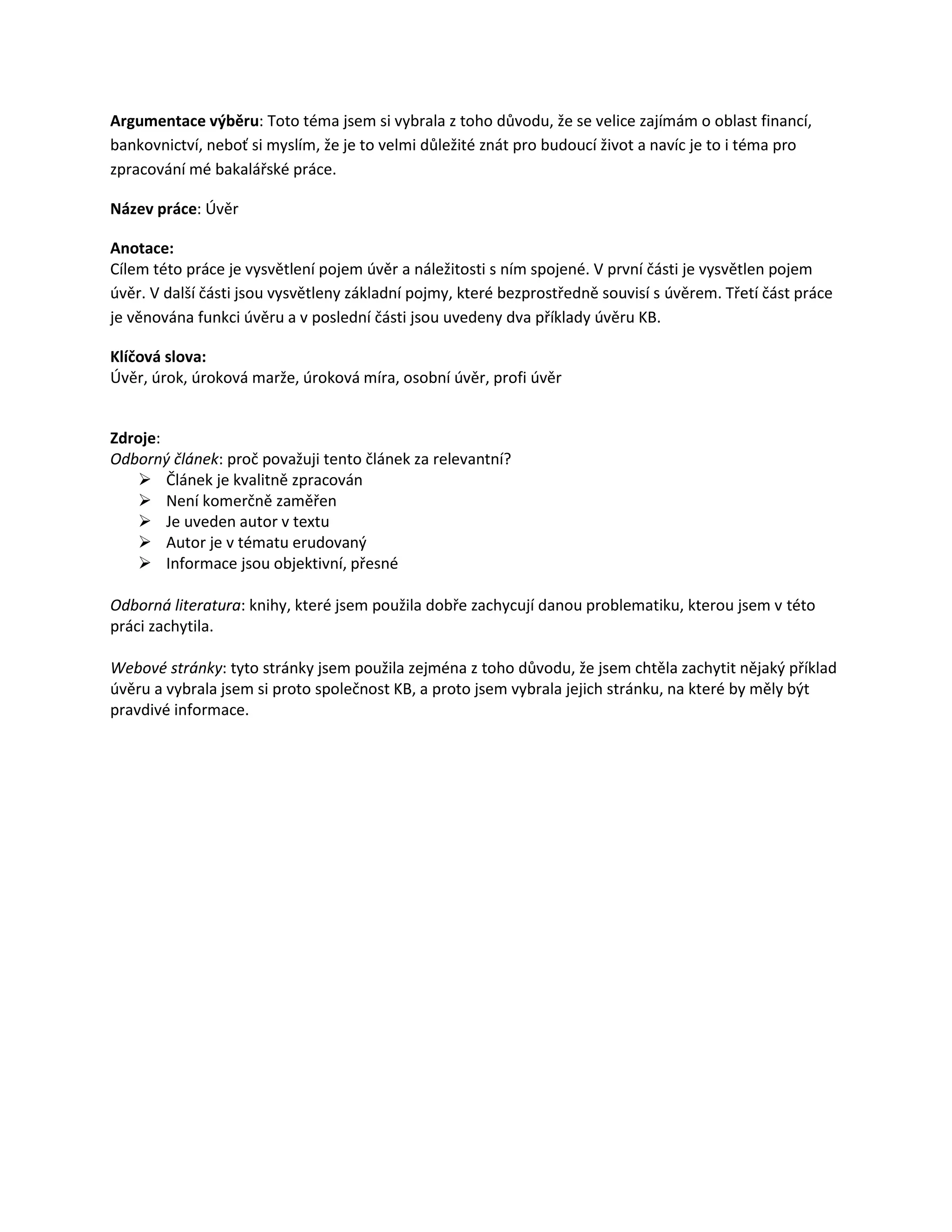 Název práce: Úvěr