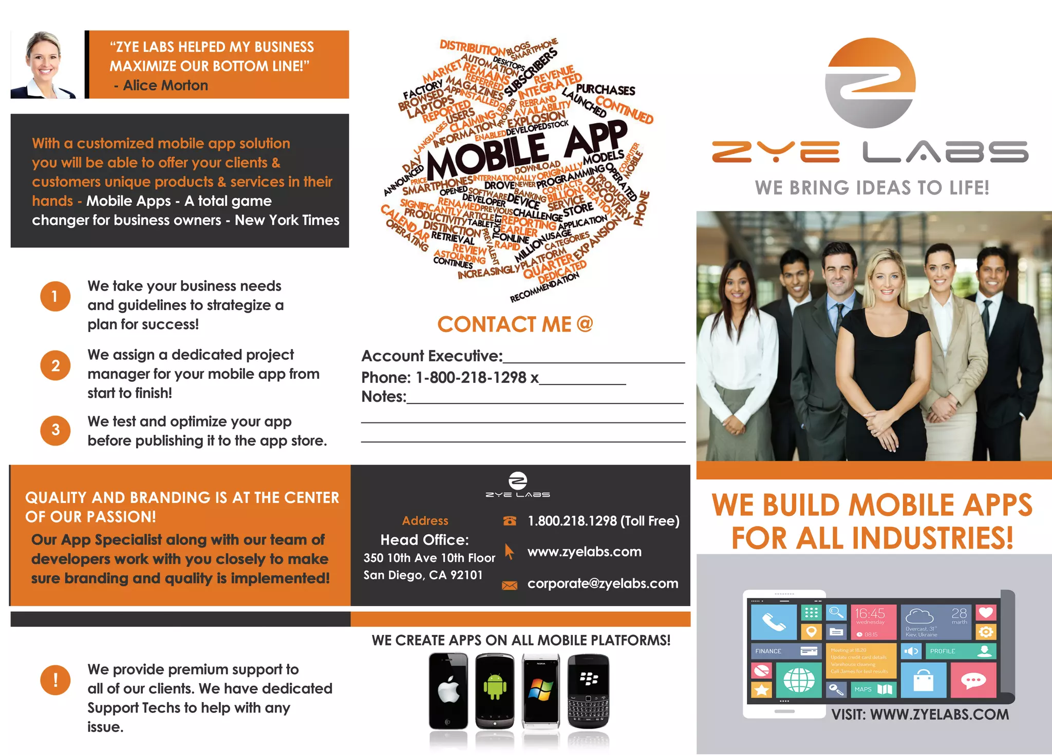 Zye Labs helps businesses maximize their bottom line by developing customized mobile apps. They assign a dedicated project manager, test apps before publishing, and provide premium support. Developing mobile apps allows businesses to offer unique products and services to customers on their mobile devices. Zye Labs builds apps for all industries and ensures their clients' ideas are transformed into amazing mobile apps that exceed expectations.
