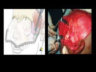 The document summarizes the zygomaticomaxillary complex fracture, including its anatomy, fracture patterns, classification systems, clinical features, investigations, management approaches, reduction techniques, fixation methods, and potential complications. Key points include that the fracture pattern typically involves 3 lines extending from the inferior orbital fissure in different directions, and management often involves open reduction and internal fixation using either a transoral/Keen's approach, Gillies temporal approach, or bicoronal approach depending on the fracture type and displacement. Complications can include nerve damage, malunion, enophthalmos, and infection.