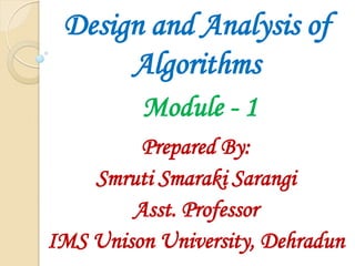 This slides contains assymptotic notations, recurrence relation like subtitution method, iteration method, master method and recursion tree method and sorting algorithms like merge sort, quick sort, heap sort, counting sort, radix sort and bucket sort.