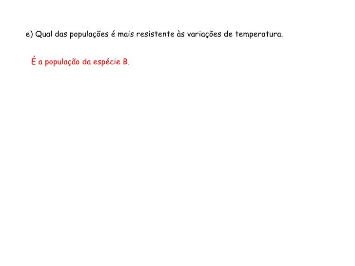 12. 12. <ul><ul><ul><ul><ul><li>e) Qual das populações é mais resistente às variações de temperatura. </li></ul></ul></ul></ul></ul><ul><ul><ul><ul><ul><li>É a população da espécie B. </li></ul></ul></ul></ul></ul>