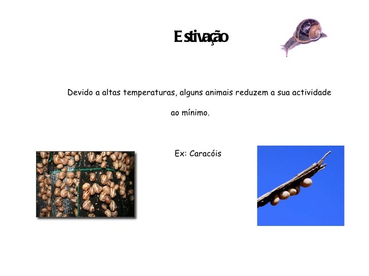 28. 28. Estivação Devido a altas temperaturas, alguns animais reduzem a sua actividade ao mínimo. Ex: Caracóis