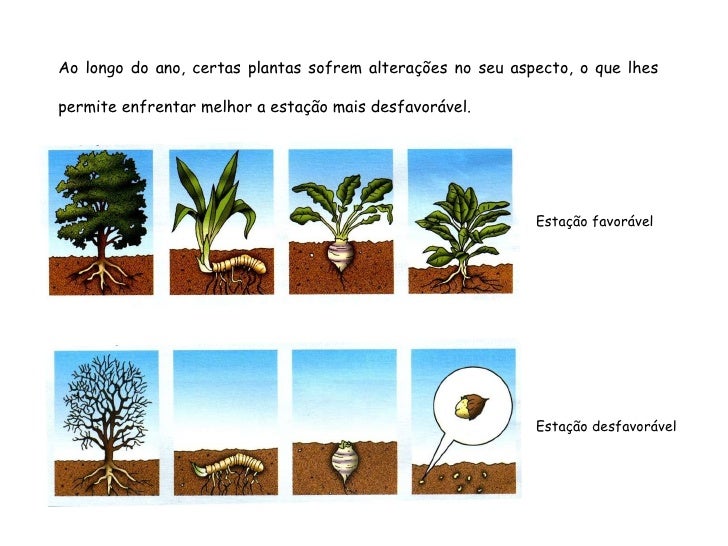 34. 34. Ao longo do ano, certas plantas sofrem alterações no seu aspecto, o que lhes permite enfrentar melhor a estação mais desfavorável. Estação favorável Estação desfavorável