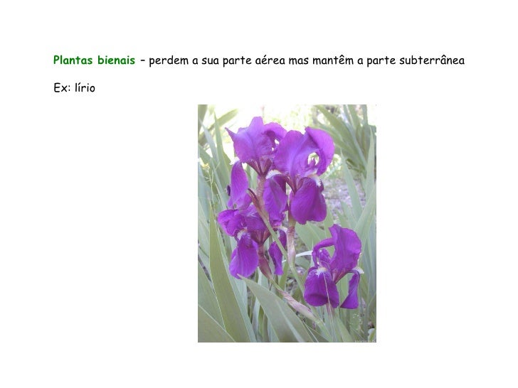 39. 39. Plantas bienais – perdem a sua parte aérea mas mantêm a parte subterrânea Ex: lírio