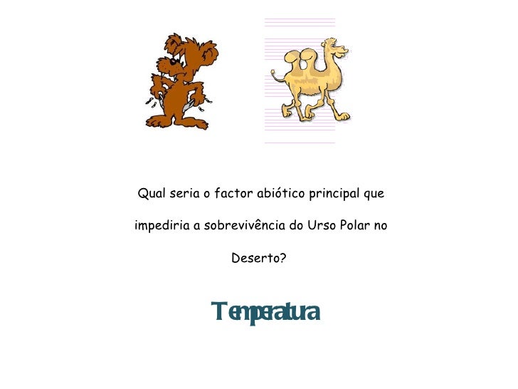4. 4. Qual seria o factor abiótico principal que impediria a sobrevivência do Urso Polar no Deserto? Temperatura