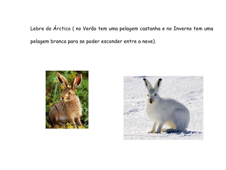 63. 63. Lebre do Árctico ( no Verão tem uma pelagem castanha e no Inverno tem uma pelagem branca para se poder esconder entre a neve).