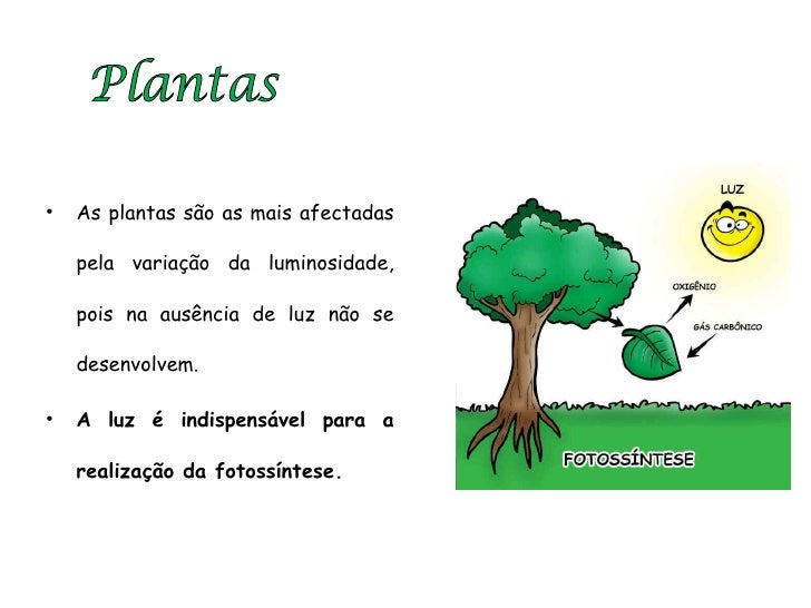 68. 68. <ul><li>As plantas são as mais afectadas pela variação da luminosidade, pois na ausência de luz não se desenvolvem. </li></ul><ul><li>A luz é indispensável para a realização da fotossíntese. </li></ul>Plantas