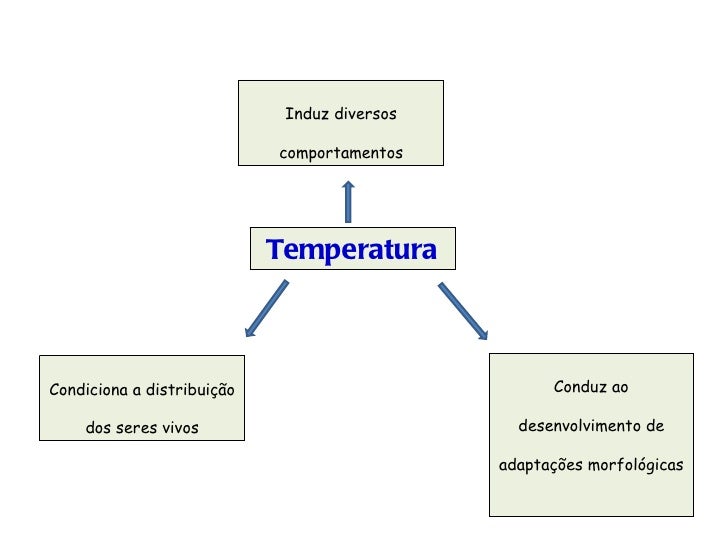 8. 8. Temperatura Induz diversos comportamentos Condiciona a distribuição dos seres vivos Conduz ao desenvolvimento de adaptações morfológicas