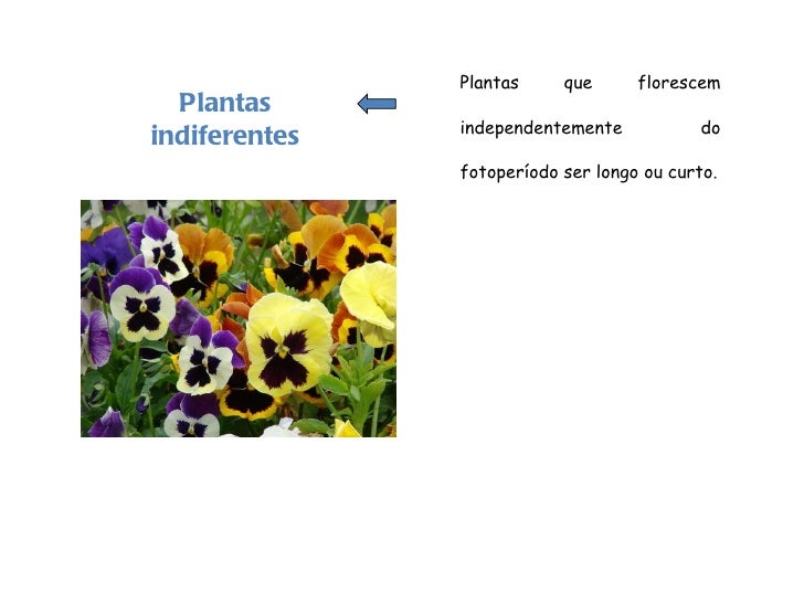 81. 81. Plantas indiferentes Plantas que florescem independentemente do fotoperíodo ser longo ou curto.
