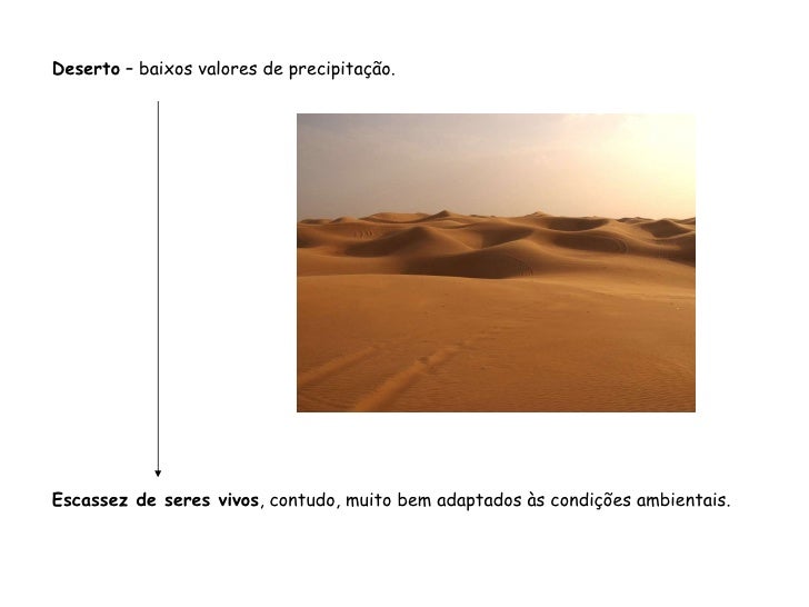 86. 86. Deserto – baixos valores de precipitação. Escassez de seres vivos , contudo, muito bem adaptados às condições ambientais.