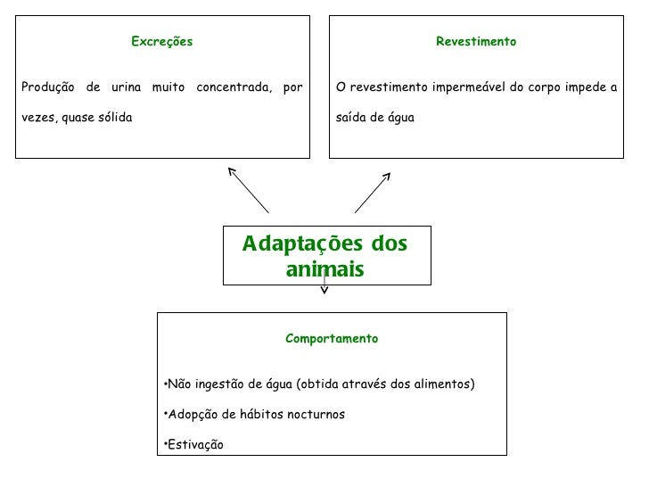 92. 92. Adaptações dos animais Excreções Produção de urina muito concentrada, por vezes, quase sólida Revestimento O revestimento impermeável do corpo impede a saída de água <ul><li>Comportamento </li></ul><ul><li>Não ingestão de água (obtida através dos alimentos) </li></ul><ul><li>Adopção de hábitos nocturnos </li></ul><ul><li>Estivação </li></ul>