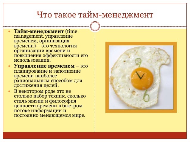 2. 2. Что такое тайм-менеджмент  Тайм-менеджмент (time management, управление временем, организация времени) – это технология организации времени и повышения эффективности его использования.  Управление временем – это планирование и заполнение времени наиболее рациональным способом для достижения целей.  В некотором роде это не столько набор техник, сколько стиль жизни и философия ценности времени в быстром потоке информации и постоянно меняющемся мире.