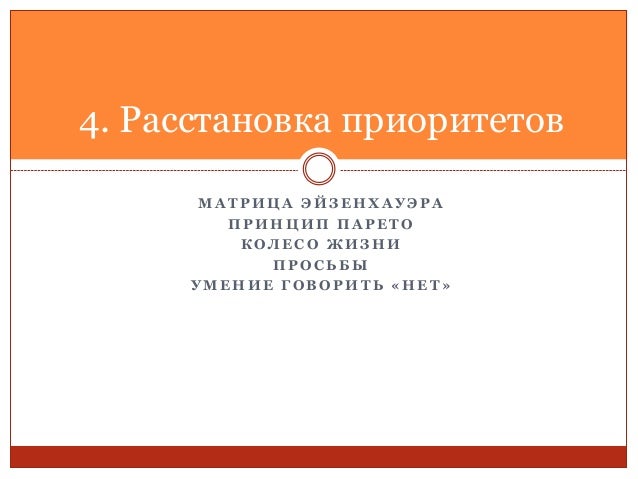 64. 64. М А Т Р И Ц А Э Й З Е Н Х А У Э Р А П Р И Н Ц И П П А Р Е Т О К О Л Е С О Ж И З Н И П Р О С Ь Б Ы У М Е Н И Е Г О В О Р И Т Ь « Н Е Т » 4. Расстановка приоритетов