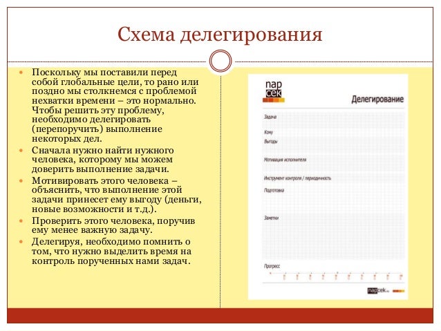 74. 74. С Х Е М А Д Е Л Е Г И Р О В А Н И Я Т И П Ы З А Д А Ч Д Л Я Д Е Л Е Г И Р О В А Н И Я 6. Делегирование