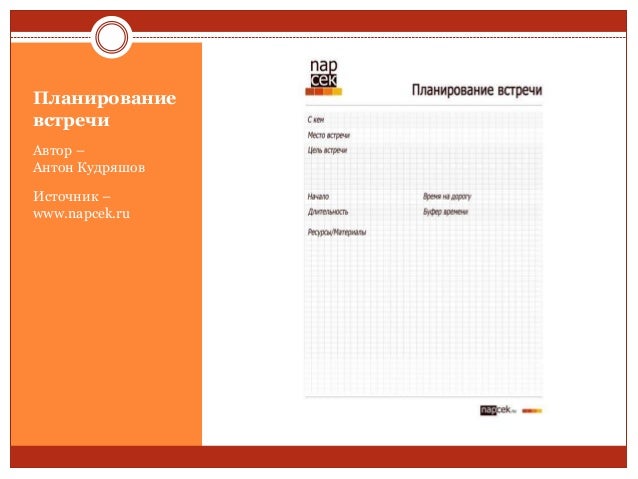 83. 83. Планирование встречи Автор – Антон Кудряшов Источник – www.napcek.ru