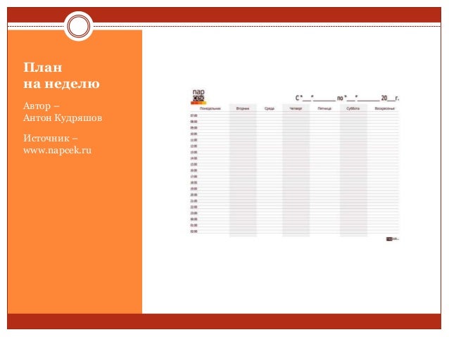 86. 86. План на неделю Автор – Антон Кудряшов Источник – www.napcek.ru