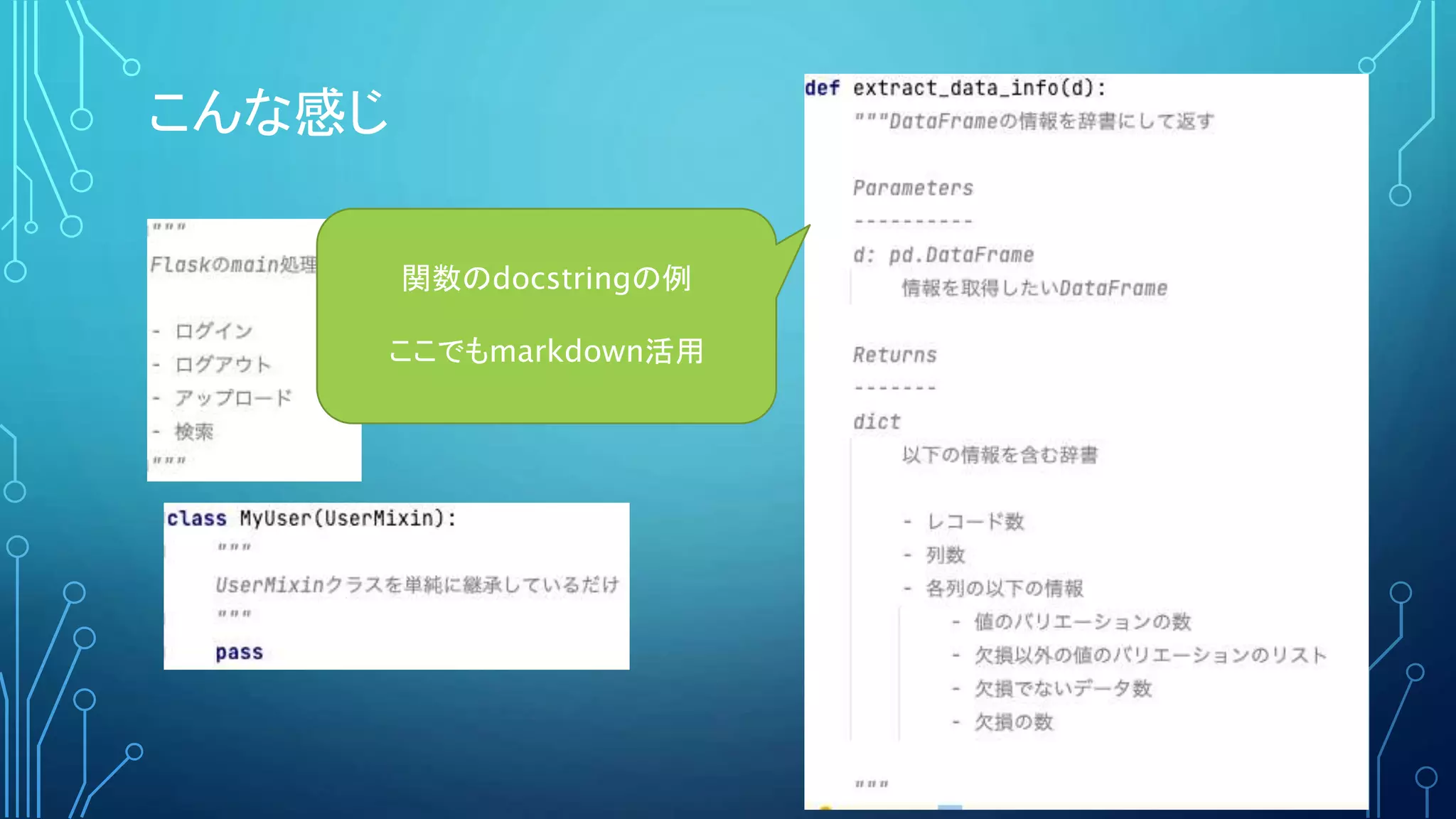 25. 25. こんな感じ 関数のdocstringの例 ここでもmarkdown活用