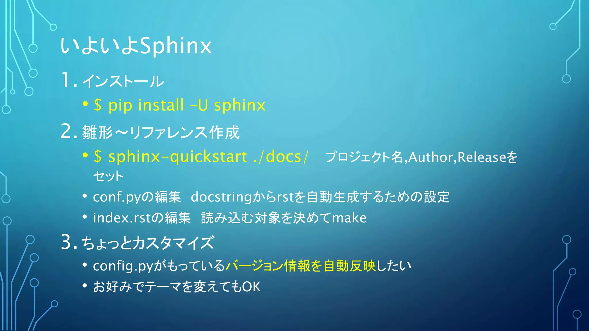 Similar to 他人が書いたコードのリファレンスをSphinxで作る方法 (20)