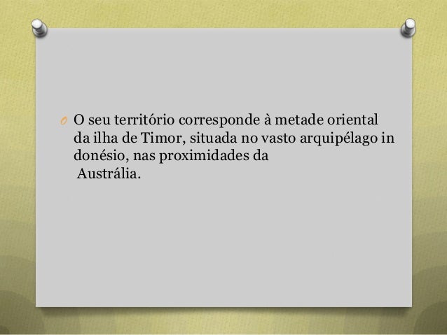 18. 18. O O seu território corresponde à metade oriental da ilha de Timor, situada no vasto arquipélago in donésio, nas proximidades da Austrália.