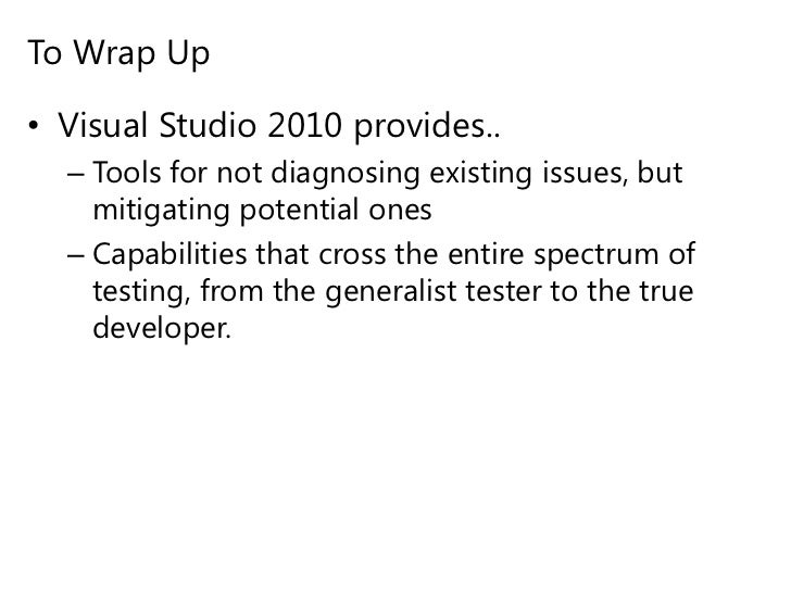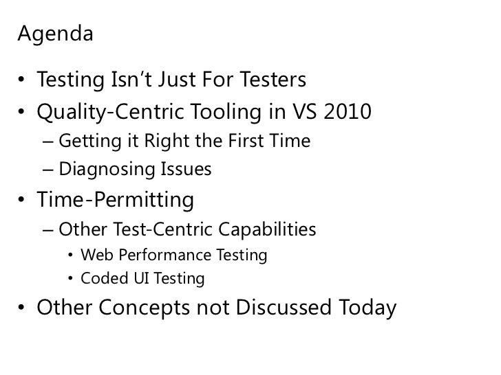 Visual Studio 2010 Testing for Developers - from DevExpress webinar on 2/24/2011.