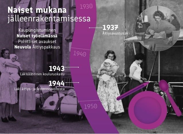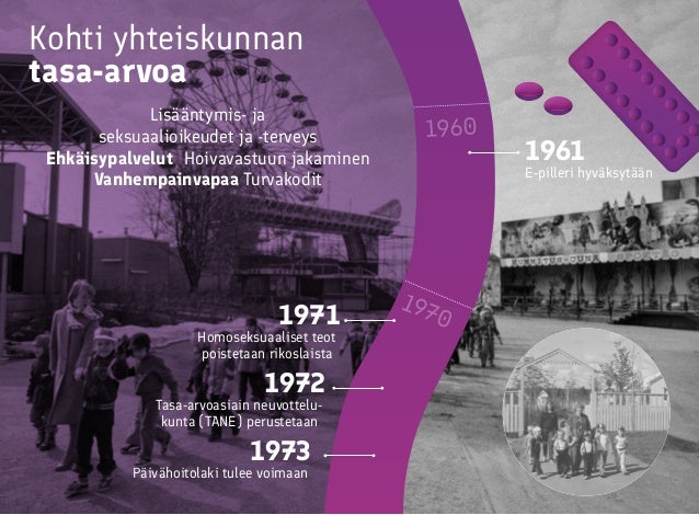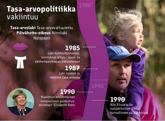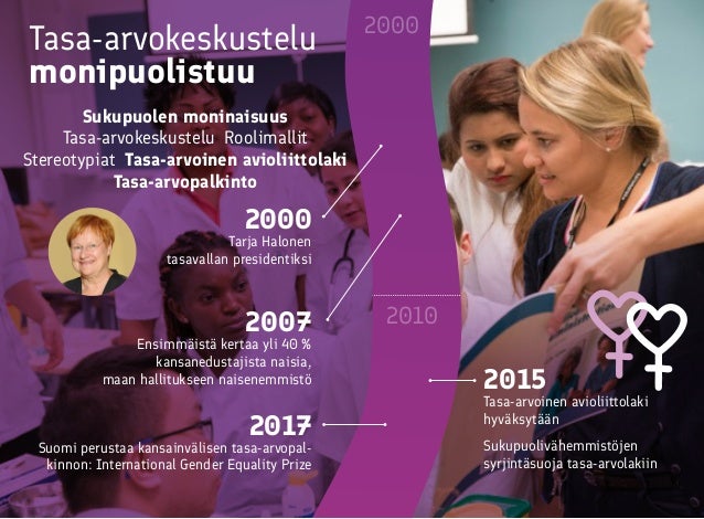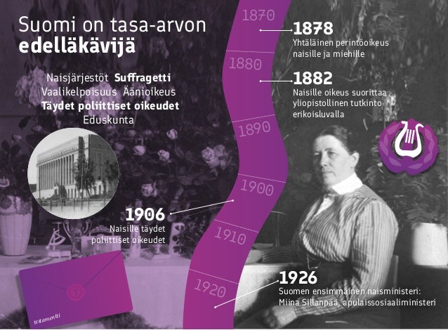 Aikajana tasa-arvotyön historiasta Suomessa.