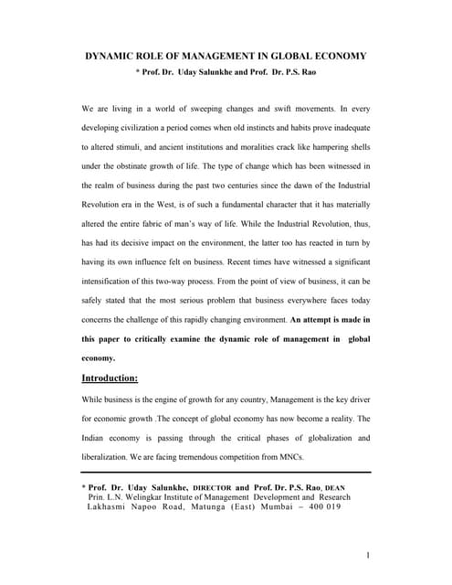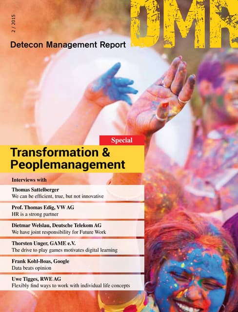 3. 3. EFMD Global Focus: Volume 08 Issue 02 | 2014 3 • Increasing corporate autism Since the 1980s, corporations have increasingly set aside concerns for a broader set of stakeholders – customers, employees and communities – in favour of the supposed interests of shareholders. This trend has accelerated after the financial crisis and led to a significant reduction in value-creating investments with a long-term horizon. Will these steadily worsening trends be tomorrow’s reality or do we still have an opportunity to shape a better future? How to escape the vicious cycle we seem to be caught in? Obviously, levers need to be pulled at both the macro and the micro levels. At the macro level, monetary and fiscal policy, labour markets, social security, tax regimes and rules governing competition all need to be addressed. Policymakers should be focused on removing obstacles and creating incentives in the right direction. This approach can be summarised, at least in part, as “Management by Getting Out of the Way,” which means refocusing regulations in fields where they are essential and otherwise enabling productive forces to act without artificial and counterproductive burdens. The micro level is, of course, the heart of management – where actual value is created and destroyed. It is where specific decisions are taken that lead into world-changing innovations or a waste of productive resources. Before growth figures for a country are calculated, the actual growth happens in individual organisations that are successfully “managed”. While politicians and other experts are obsessed with aggregations and ratios, they tend to forget that the action happens in real life and not in the abstractions of economics. Management is a real-world practice dealing with people and organisations. Managers can make all the difference in the world with their knowledge, their creativity, their emotions and their values. Management, in this broad (and very Druckerian) sense includes commercial players, non-profit organisations and public-sector bodies. Each has the mandate to create value and to achieve its mission. Management, the American author and journalist Walter Kiechel wrote in Harvard Business Review, has come to “shape the world in which we work” amid “an era of global triumph, measured by agreement on certain key ideas, steadily improving productivity, the worldwide march of the MBA degree and a general elevation of expectations about how workers should be treated”. The Great Transformation by Richard Straub Drucker was a key figure in the rise of management as a discipline. He “laid out a vision of the corporation as a social institution – indeed, a social network – in which the capacity and potential of everyone involved were to be respected,” Kiechel asserted. Management – a track record with big question marks Once we accept the importance of good management for the economic and social well- being of today’s world, it is legitimate to ask a critical question: are managers equipped – in terms of skills, competencies and courage – to lead us towards the Great Transformation? We have indeed learned a lot about management. It has become a focus of education, research and practice. Great thinking has gone into the development of the discipline of management, into tools and methodologies and, increasingly, into specialised fields such as marketing, operations, finance and human resources. Thousands of books proclaim the latest breakthroughs and show the progress of management thinking and research. For example, Julian Birkinshaw, a professor at London Business School in the UK, suggests in his book Reinventing Management four main dimensions along which management has been steadily, if slowly, evolving: (1) co-ordinating work with a shift from bureaucracy to emergent practices (2) making decisions by drawing on collective wisdom (3) setting objectives that rely on the principle of obliquity rather than direct alignment (4) motivating employees by intrinsic rather than extrinsic methods 65One billion people around the globe, demographers tell us, will be above the age of 65 by 2035 High-profile projects such as the German energy transition (Energiewende) show deep management flaws ranging from strategy to execution. Everyday projects, which do not typically capture the headlines, are also mismanaged