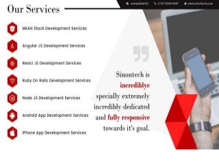 Sinon Tech is a Leading Web Application Development Company in USA, offers custom iPhone & iOS apps development, and all types Application Development services provider for entrepreneurs & small businesses. To serve you with Web Application Development Company, Sinon Tech offers an experienced team of developers who include all your business objectives with the app features. As a result, the developed product presents every trait that brings a huge amount of business from your consumer base. We design, develop and test the application to ensure the robust nature and the returns for the investment you make. Call on +91 8141374997 or visit at https://www.sinontechs.com/