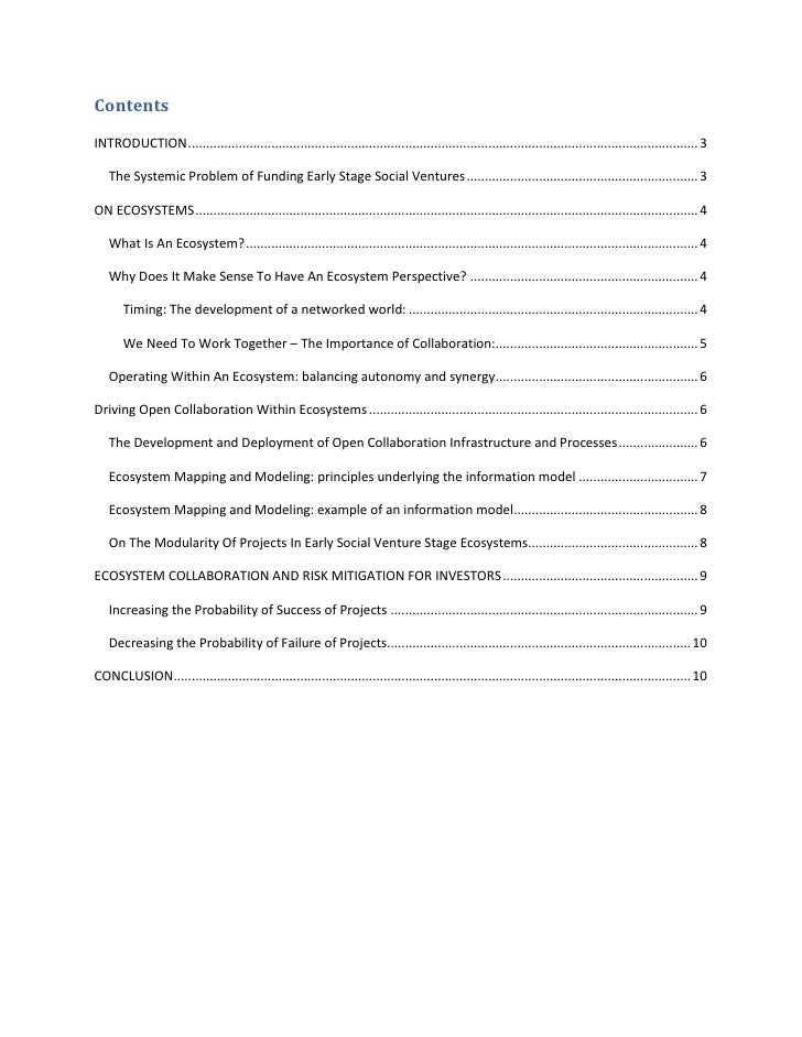The theory underlying the Ecosystem Pooled Fund - a collaborative strategy to finance early stage social ventures.