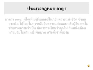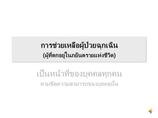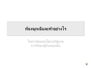 The document discusses guidelines for emergency triage in Thailand. It introduces a modified Emergency Severity Index (ESI) triage system with 5 levels to assess patients. The levels are described in a table with corresponding vital sign thresholds for temperature, heart rate, respiratory rate, and oxygen saturation. The system is meant to guide prioritization of care with ESI level 1 being the most urgent and 5 the least. Overall the document provides an overview of Thailand's adopted emergency triage guidelines and modified ESI triage scale to standardized patient assessment in emergency departments.