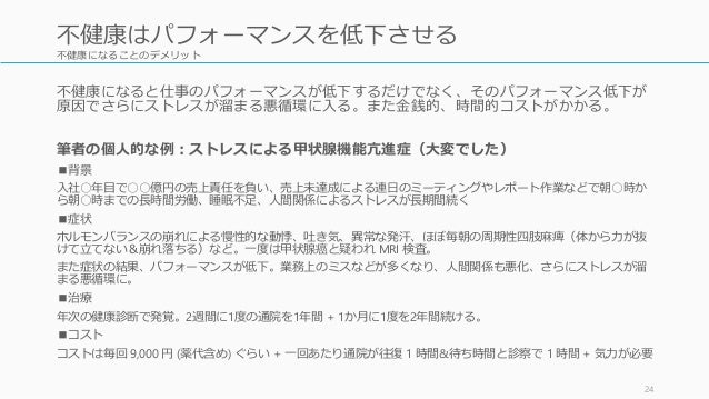 私の近くにいるスタートアップの CEO やスタートアップで働く方々は、その多くが働きすぎじゃないかと思うぐらい、昼夜問わずに働いています。そんな彼らに健康であり続けてほしいと思うので、参考情報を中心に書きました。
