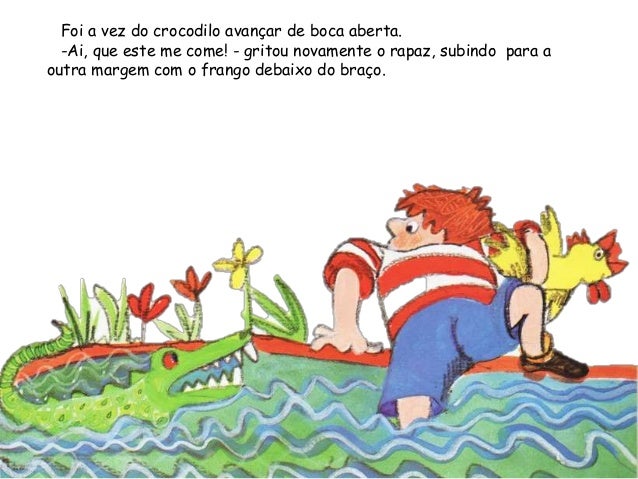 24. 24. Foi a vez do crocodilo avançar de boca aberta.-Ai, que este me come! - gritou novamente o rapaz, subindo para aoutra margem com o frango debaixo do braço.