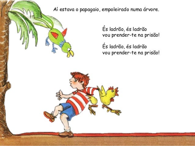 25. 25. Aí estava o papagaio, empoleirado numa árvore.És ladrão, és ladrãovou prender-te na prisão!És ladrão, és ladrãovou prender-te na prisão!