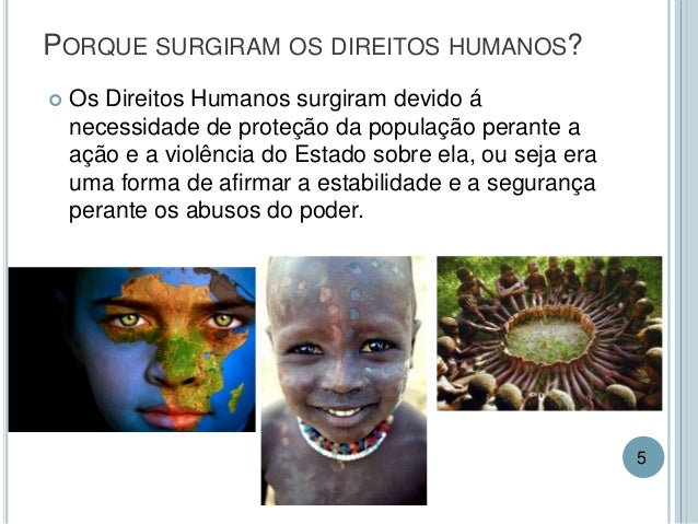 7. 7. PORQUE SURGIRAM OS DIREITOS HUMANOS?  Os Direitos Humanos surgiram devido á necessidade de proteção da população perante a ação e a violência do Estado sobre ela, ou seja era uma forma de afirmar a estabilidade e a segurança perante os abusos do poder. 5