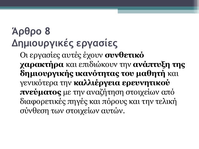 Υ.Α. Αρ. Πρωτ. 220473/Δ2 / 23-12-2016, Οδηγίες για την εκπόνηση των Δημιουργικών Εργασιών στο Γενικό Λύκειο (άρθρο 8 του Π.Δ. 46/2016) για το σχολικό έτος 2016-2017