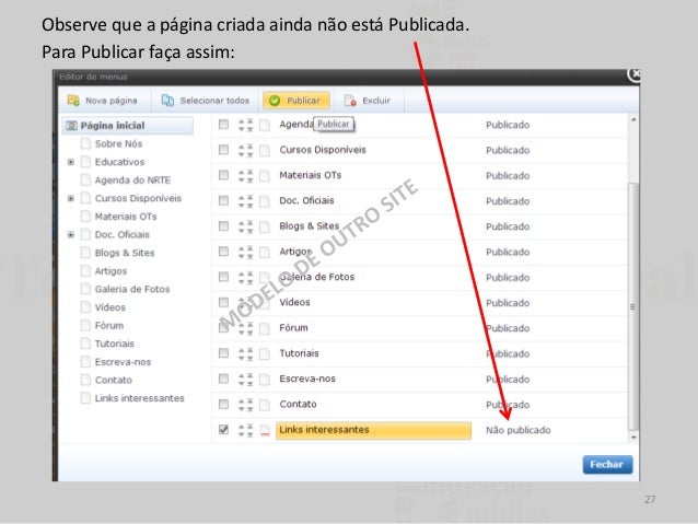 27. 27. Observe que a página criada ainda não está Publicada. Para Publicar faça assim: 27