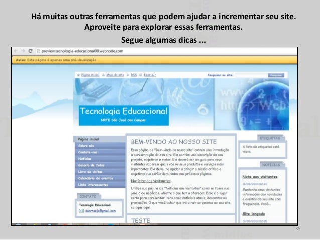 35. 35. Há muitas outras ferramentas que podem ajudar a incrementar seu site. Aproveite para explorar essas ferramentas. Segue algumas dicas ... 35