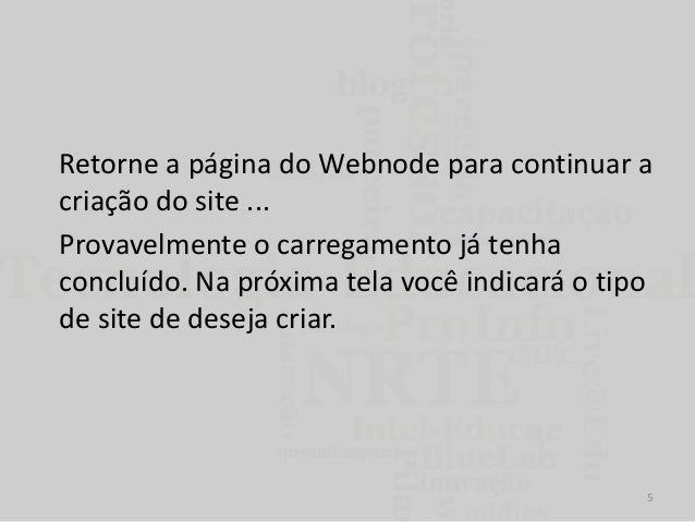 5. 5. Retorne a página do Webnode para continuar a criação do site ... Provavelmente o carregamento já tenha concluído. Na próxima tela você indicará o tipo de site de deseja criar. 5