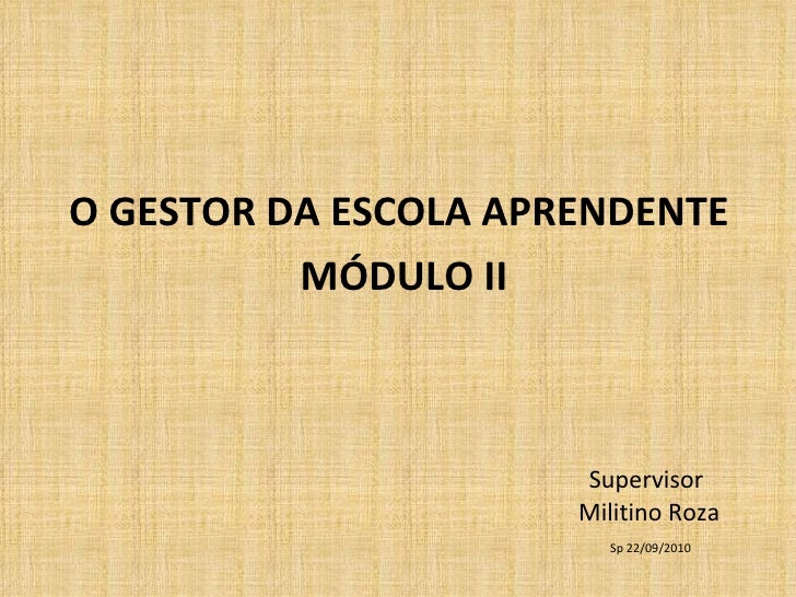 1. 2. Supervisor Militino Roza Sp 22/09/2010 <ul><li>O GESTOR DA ESCOLA APRENDENTE </li></ul><ul><li>MÓDULO II </li></ul>