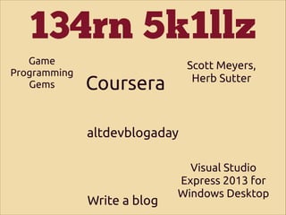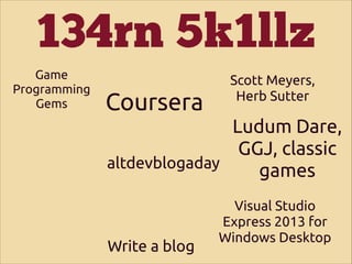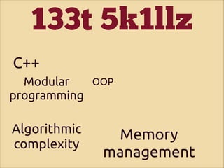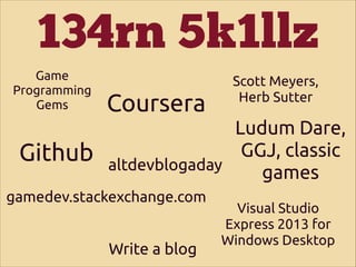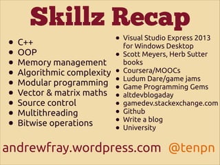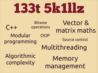 Talk given at GamesWest 2013 about skills required to work as a programmer at a major games studio.