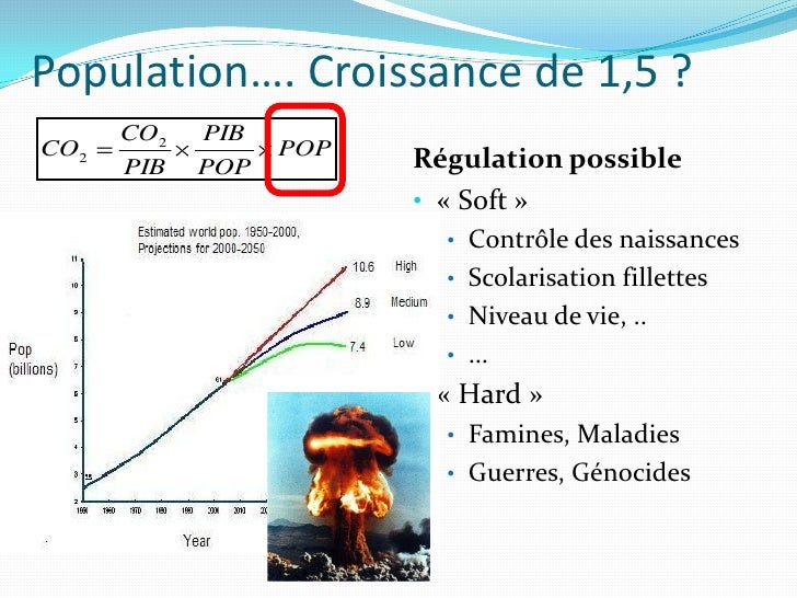 4. 4. Population…. Croissance de 1,5 ? CO2 PIB CO2 POP Régulation possible PIB POP • « Soft » • Contrôle des naissances • Scolarisation fillettes • Niveau de vie, .. • … • « Hard » • Famines, Maladies • Guerres, Génocides