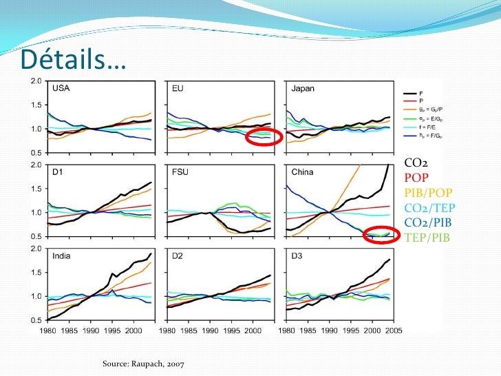 8. 8. Détails… CO2 POP PIB/POP CO2/TEP CO2/PIB TEP/PIB Source: Raupach, 2007