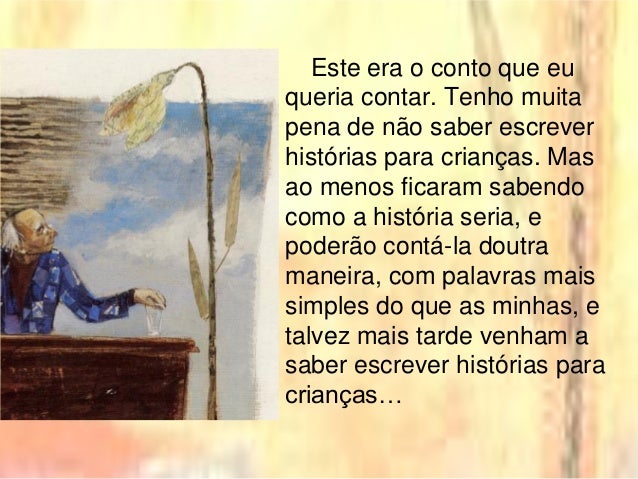 16. 16. Este era o conto que eu queria contar. Tenho muita pena de não saber escrever histórias para crianças. Mas ao menos ficaram sabendo como a história seria, e poderão contá-la doutra maneira, com palavras mais simples do que as minhas, e talvez mais tarde venham a saber escrever histórias para crianças…