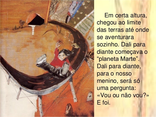 6. 6. Em certa altura, chegou ao limite das terras até onde se aventurara sozinho. Dali para diante começava o “planeta Marte”. Dali para diante, para o nosso menino, será só uma pergunta: «Vou ou não vou?» E foi.