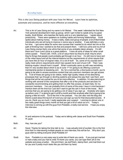 but brief. This should read like a short narrative story of what a user did while they were using your app. In games, I usually call this a ‘Game Flow Summary’. Often comes before the Progression in the design document. I find I usually write it first to help myself define the experience. After the progression has been completed, I go back and edit this down.
